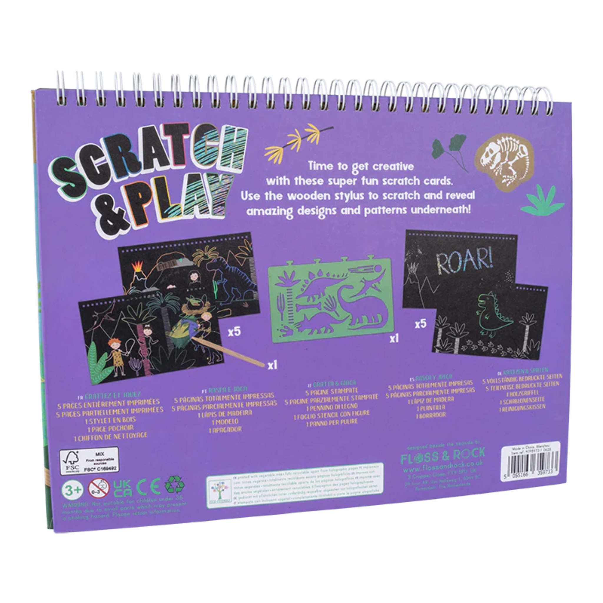 Scratch away and play! Hours of creative fun can be had with our Scratch & Play spiral bound books. Inside you'll find 10 pre-printed scratch cards containing our super Space illustrations - space people, planets, rockets, aliens and more. Using the wooden stylus included you can scratch to 'colour in', create new lines or coloured shapes. The stencil card included can be taken out and placed anywhere in the book, meaning you can follow the guidelines to scratch an alien space ship, skateboarding space person and more!