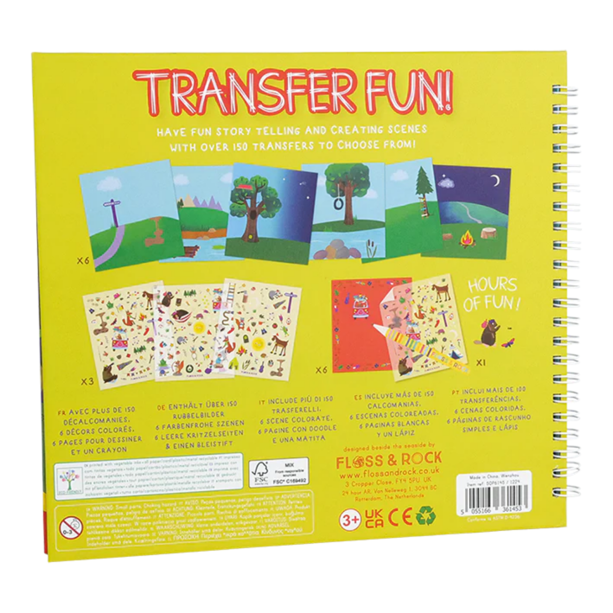 There's so much fun to be had with Transfers! This Adventure Transfer Fun comes with over 150 brilliant Rainbow Fairy themed transfers, 6 colourful scenes to place them onto, 6 plain pages for freestyle doodling and a Floss & Rock pencil. Open the spiral bound book to find all your transfers neatly stored in the 'My Transfers' pocket, find your chosen illustration and flick through the pages to find the perfect scene to put them onto. Scratch over the top of the drawing with the pencil provided and lift up the sheet, like MAGIC you'll find them transferred onto the page. Spend many happy hours sparking creativity and making beautiful pictures with fairies, unicorns, llamas and more.