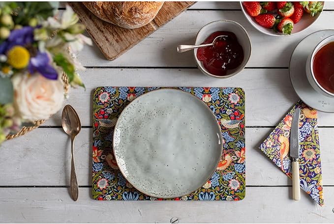 • HIGH QUALITY PLACEMATS: A set of four stunning placemats, featuring the traditional 'Strawberry Thief' print by William Morris. These premium table mats will provide protection for your dining table and are a stylish statement piece for your home.