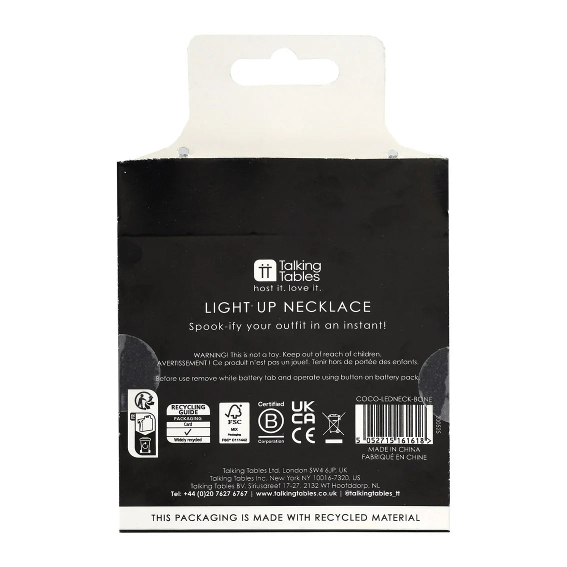 Get lit this Halloween with our glowing skeleton necklace. Featuring a string of bright white bone lights, it’s perfect for trick-or-treating, spooky parties or making sure you’re seen in the dark. Lightweight and battery-operated, it’s an easy win for costume upgrades or creepy accessories.