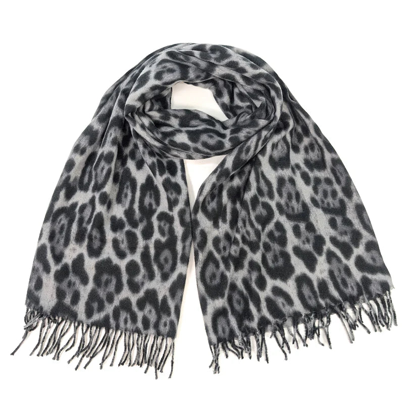 This bold yet wearable leopard print scarf is the perfect way to bring life to neutral outfits while staying toasty. Black tones pair easily with everything from denim to formal coats.