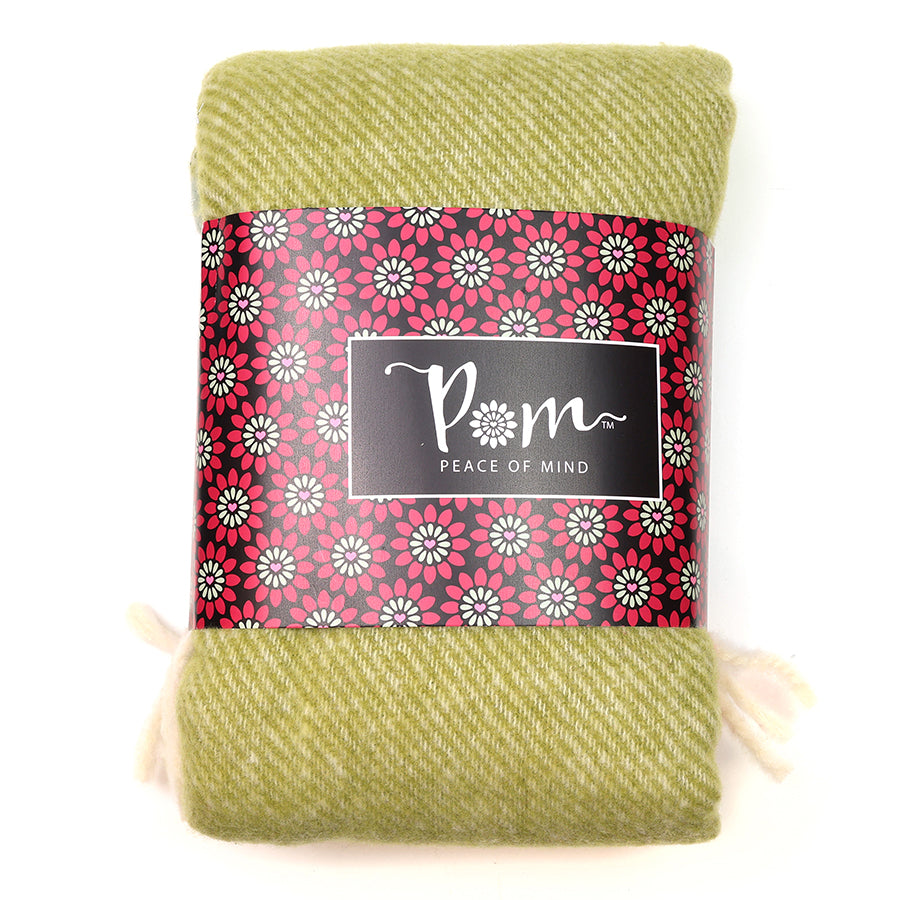 Olive twill weave scarf with magenta, cream and duck egg stripes and tassels at each end