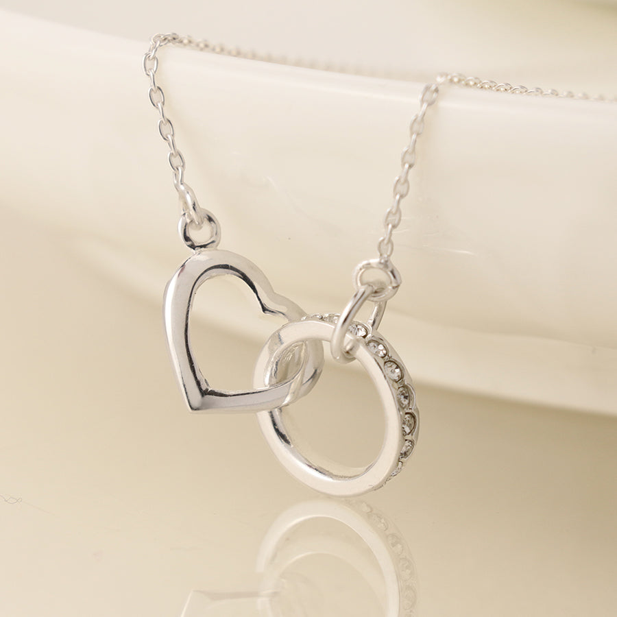 Sterling silver split chain necklace with a linked heart and crystal edged hoop