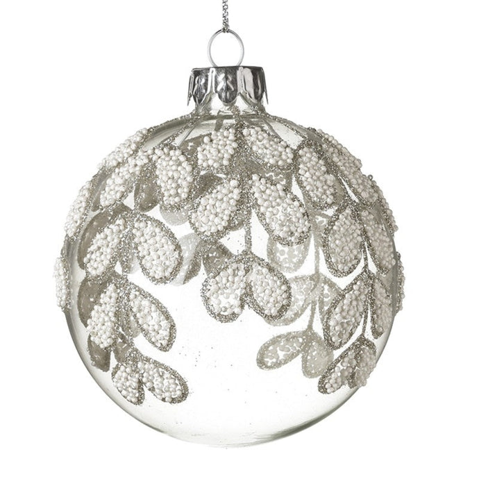 White Beaded Leaf Glass Bauble